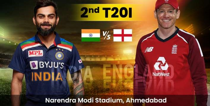 Due to great performance in both bowling and batting, India won this match by 7 wickets in 17.5 overs against England in the second T20 match in Ahmedabad. After winning this match, India level the series (1–1).