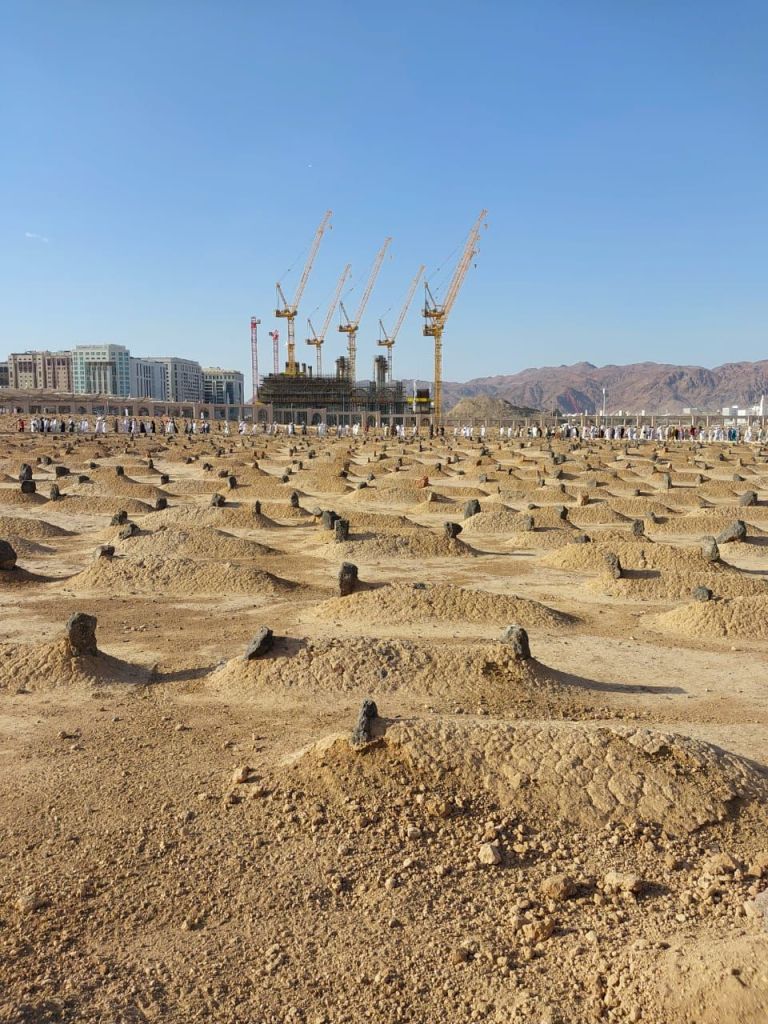 Jannat al-Baqi is situated next to or close to the Masjid al-Nabawi and is one of the oldest and first Islamic Cemetery in the Islamic History in the city of Medina, Saudi Arabia. As per Islamic History, Jannat al-Baqi was founded or establoshed by Prophet Muhammad and served as the burial place of their companions, family members, and relatives. Jannat al-Baqi opens for the public after the Fajr and Asra prayers for Ziarat in the city of Medina, Saudi Arabia.