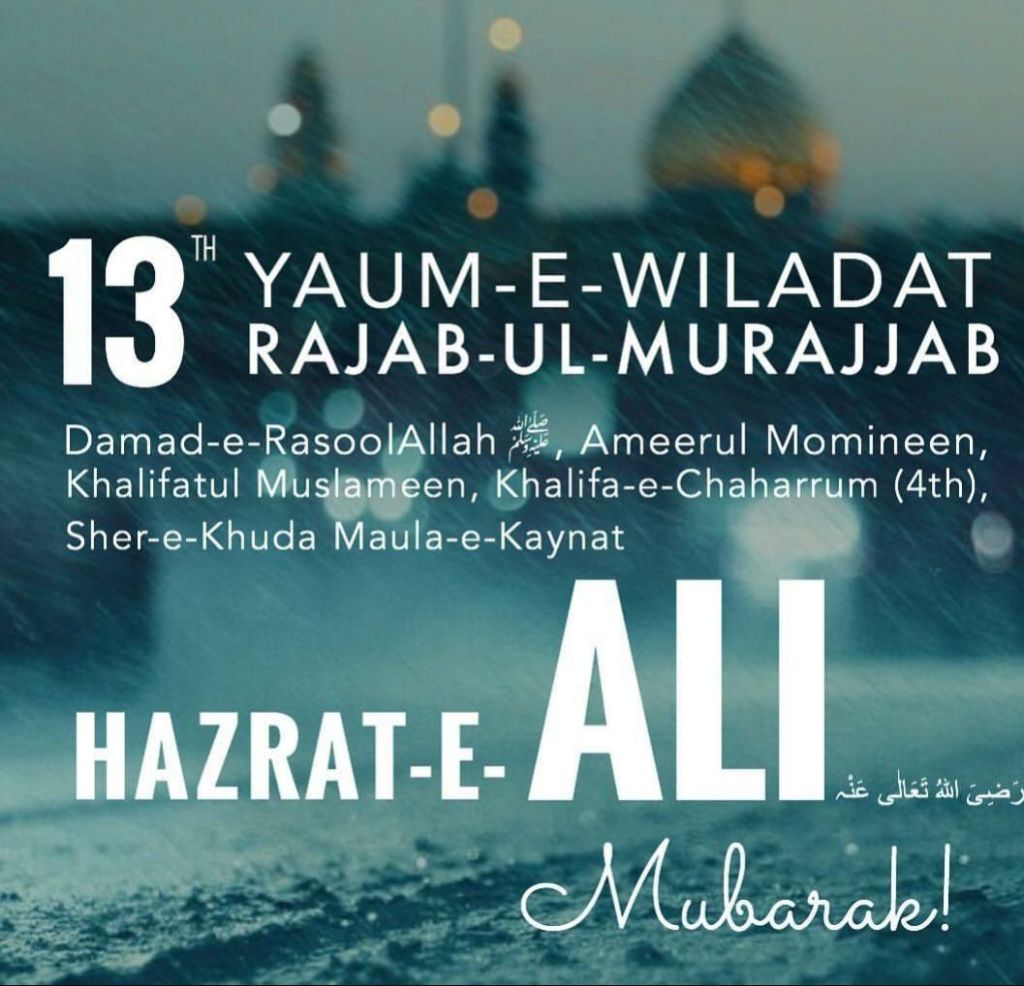 Celebrations 13 Rajab Mubarak 2026 Posted by daneelyunus on January 2, 2026January 2, 2026 13 Rajab Mubarak to all my dear friends Share this: Click to share on X (Opens in new window) X Click to share on Facebook (Opens in new window) Facebook Like Loading...